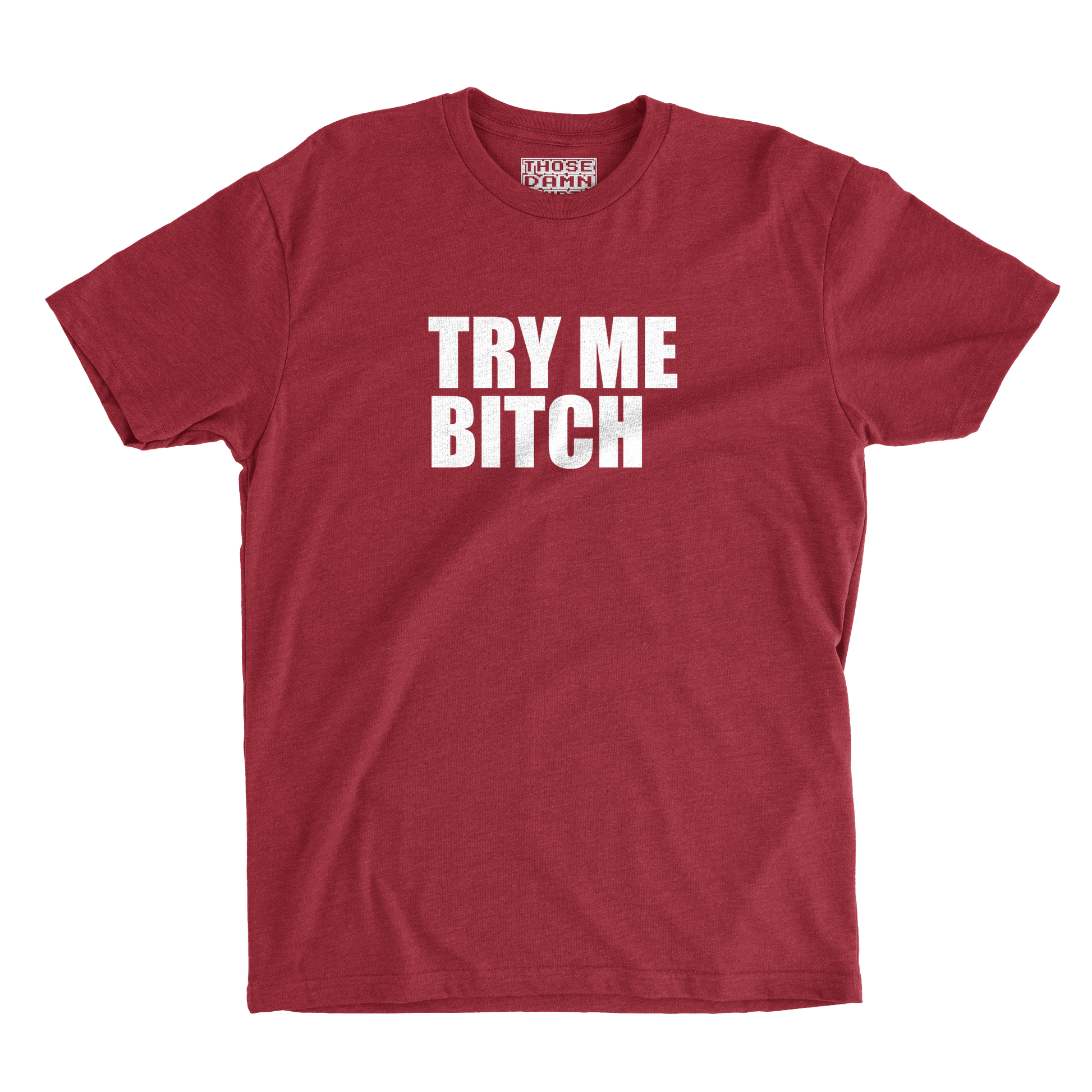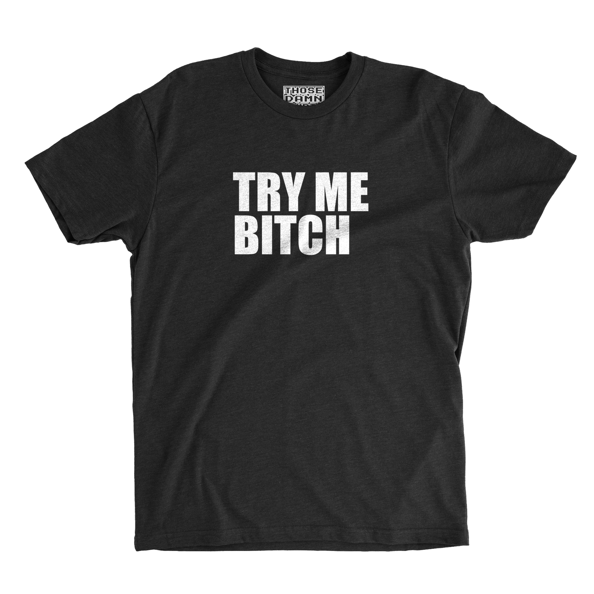 TRY ME BITCH — two words that instantly lower the IQ of the entire room.